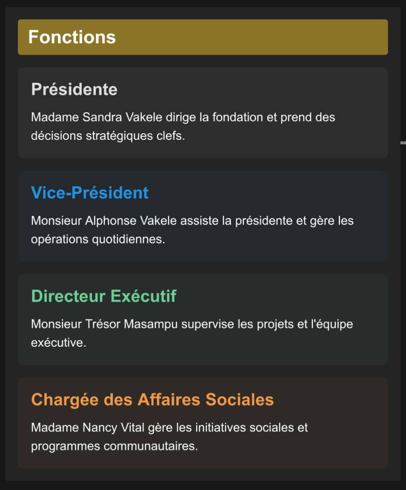 SANDRA VAKELE : Première Dame de la fondation Savak.